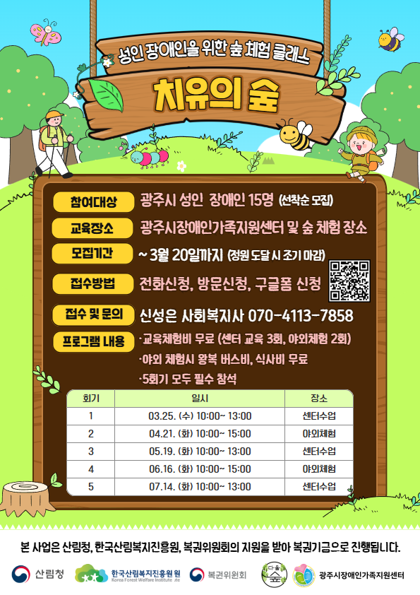 성인 장애인의 정서적 안정과 활력 증진을 위한 숲 클래스에 여러분을 초대합니다.